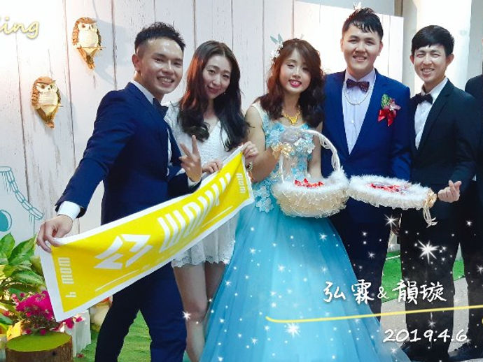 兩位可愛又低調的新人,還記得第一次見面討論流程時,新娘子就說所有活動都不要,讓我們當自己演唱會表演就可以了,雖然我們很喜歡表演,不過畢竟主角還是新人,總是要跟大家見見面,不過真的很開心能讓新人對我們演出的肯定。 然而新人也很堅持,除了進場及敬酒外,其他活動都省略,一切都交由...